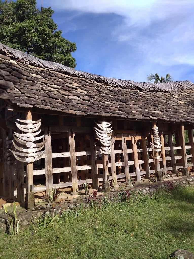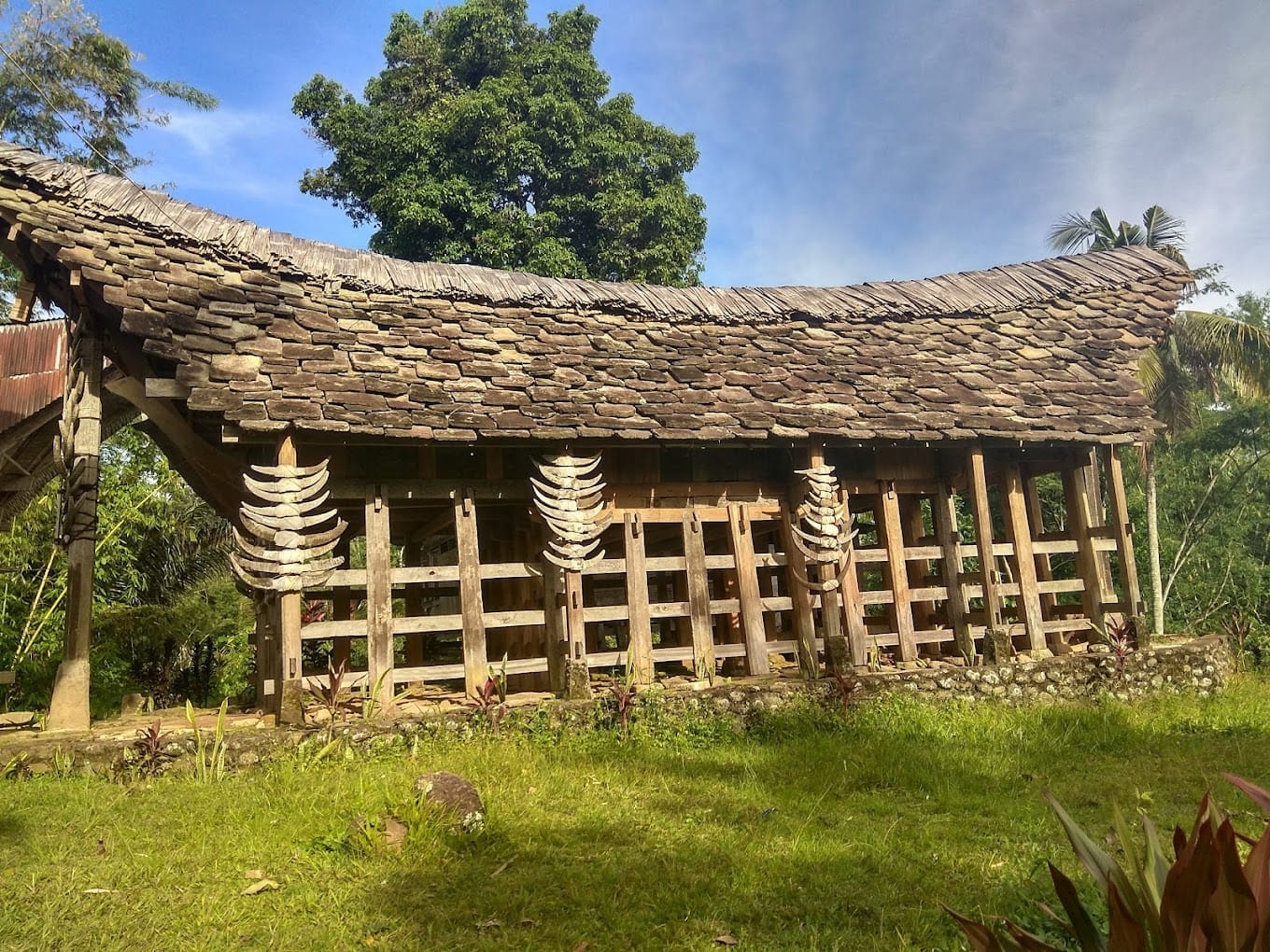 Papa Batu is the name of the Tongkonan located in Lembang Tumakke in the Rembon sub-district of Tana Toraja. The house was built around seven hundred years ago by a man named Butu Batu. The difference between this Tongkonan from other Tongkonan houses is that its roof is made of andesite and padas stones, lending it a unique and majestic appearance. Stone in Indonesian is Batu. Appropriately, this is the only known Tongkonan remaining with a roof of stone. Due to high building costs for materials and construction, only the most affluent people could have built this one of a kind home.