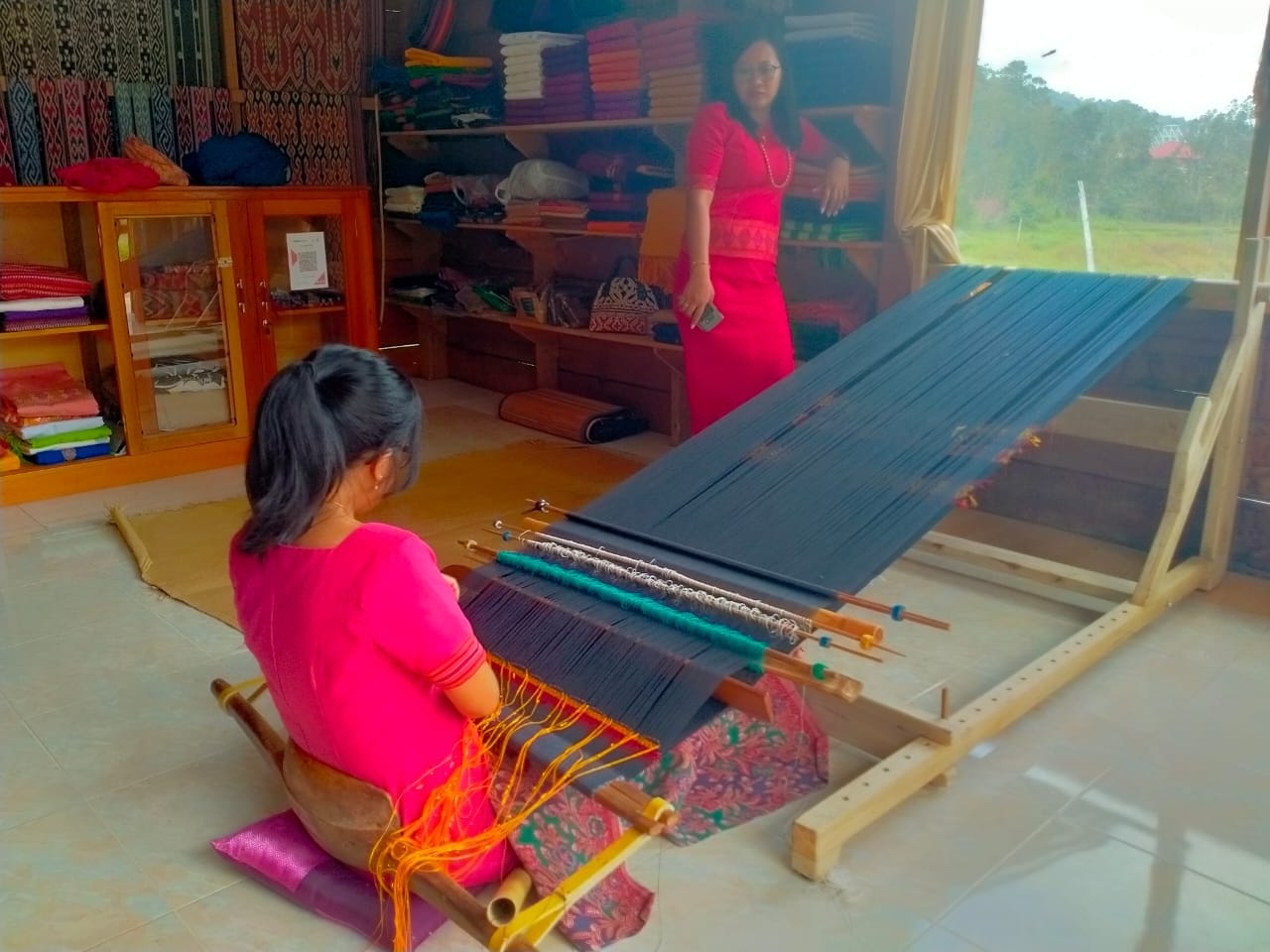 Sa’dan To’Barana’ today is a weaving village well known for its weaving handicrafts or tenun. The craftswomen and men still use traditional tools made from wood and bamboo to weave and tie these colourful cloths. In this village, weaving and tying traditional textiles is an activity passed down for generations. Even thestring or thread used in the fabric is created from natural materials such as bark or cotton and is hand-spun into yarn. The yarn is dyed with natural ingredients, including a mixture of betel nuts and ginger roots to produce a red colour, bilante leaves or mud to produce a black colour, and tarun leaves or indigo to produce a blue colour. White is one of the fundamental colours used in tenun and is generated from cotton flowers.