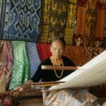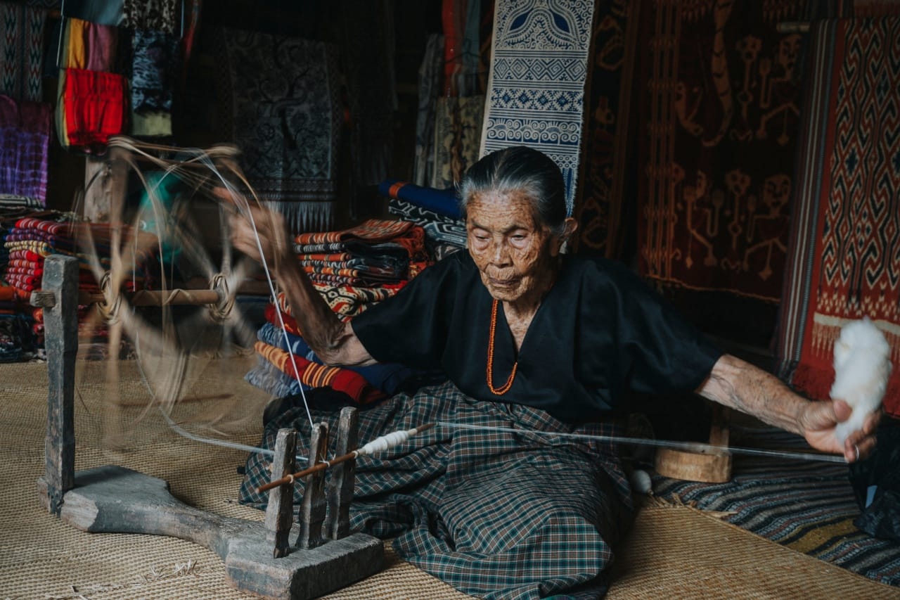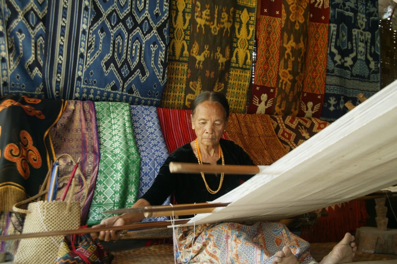 When walking through Sa’dan, you will find shops at the back of the Tongkonan that sell various tenun, but only some are handmade. You may also see women tying an ikat cloth with a variety of motifs in front of the Tongkonan who are happy to tell you about the different cloths and patterns as well as what occasions the cloths are worn. They may even let you sit at their looms to take a picture to bring home!