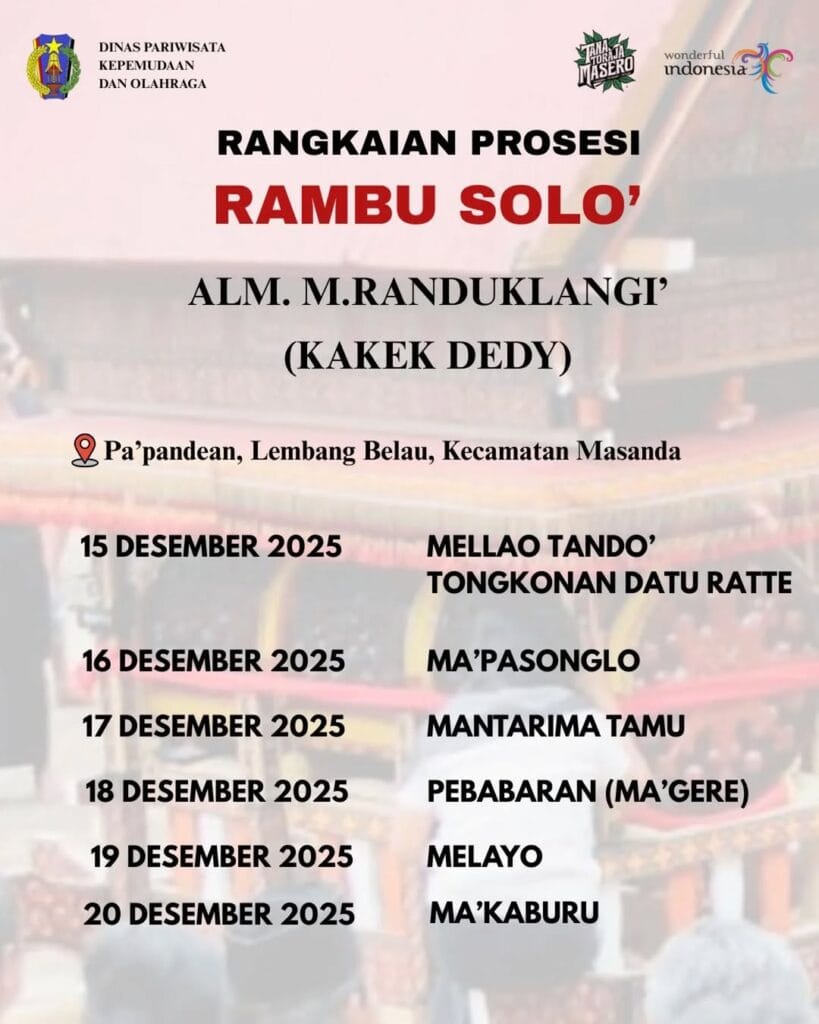 The following is the Rambu Solo’ ritual schedule of the late M. Randuklangi (Kakek Dedy), on December: